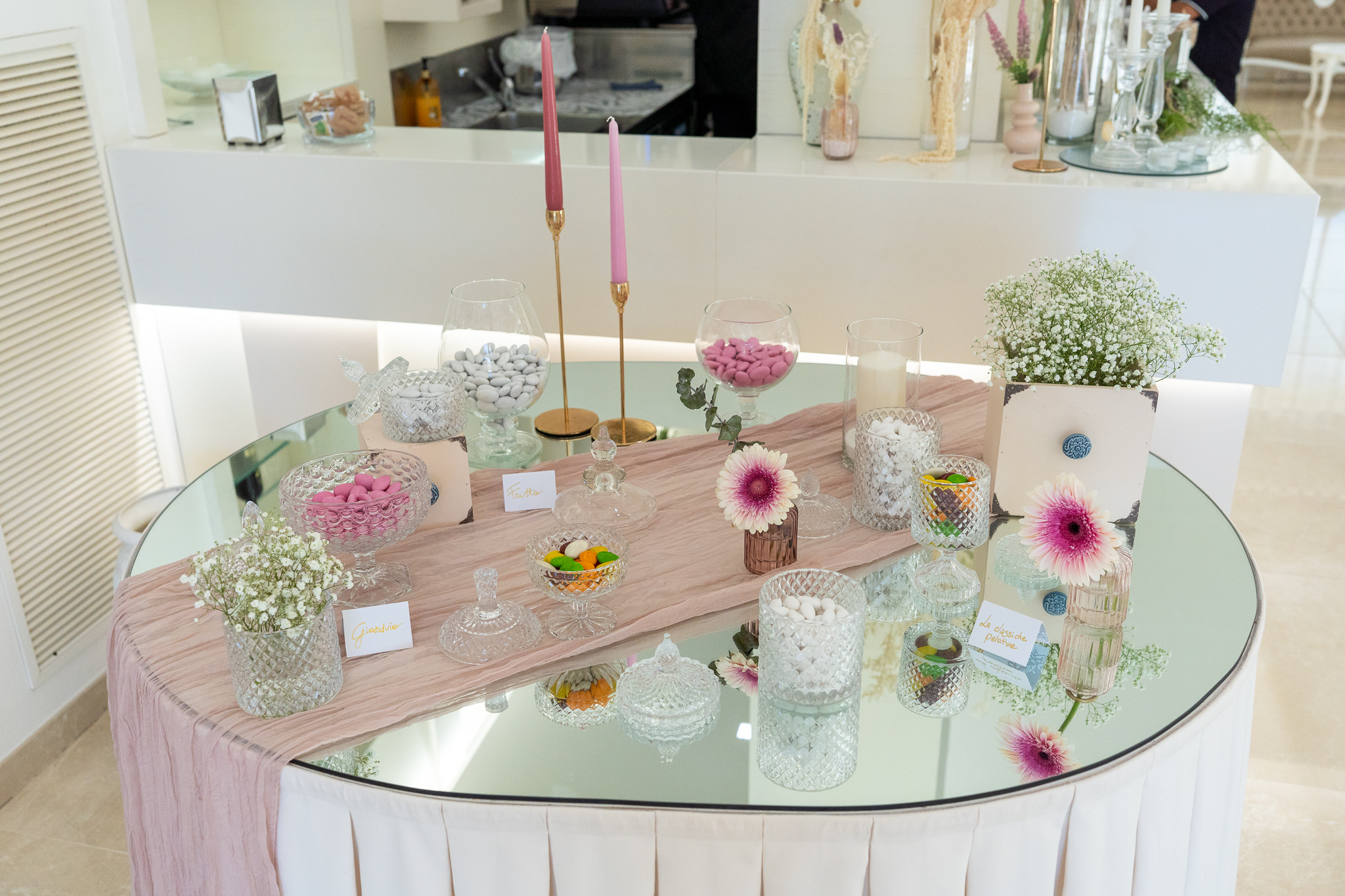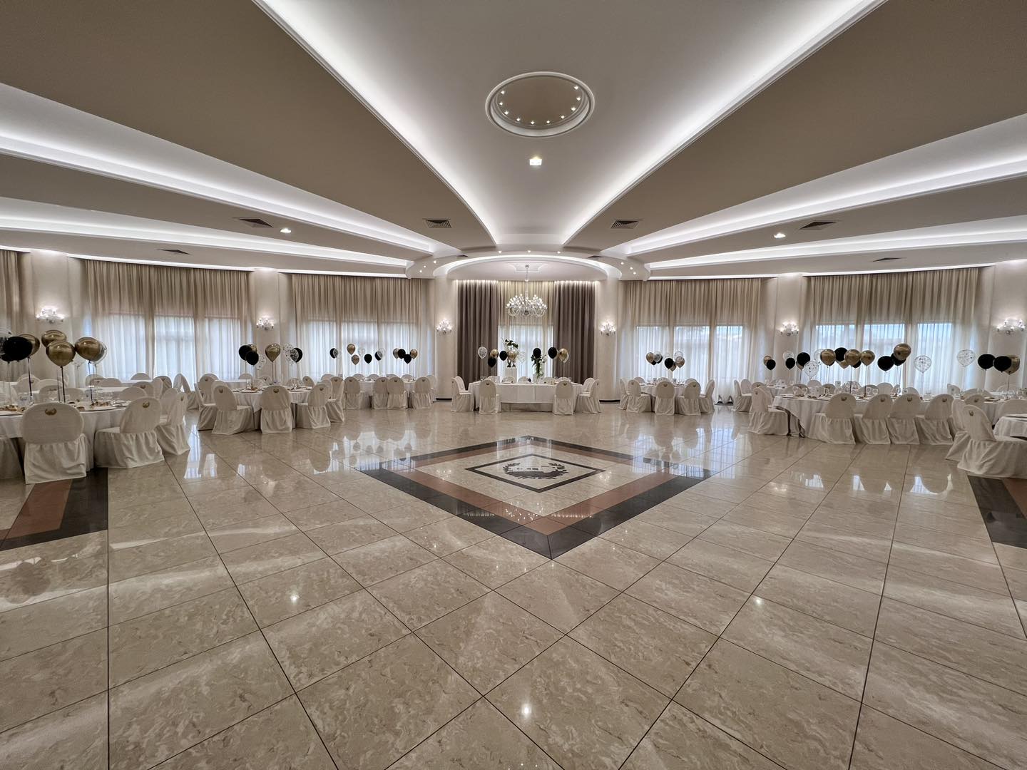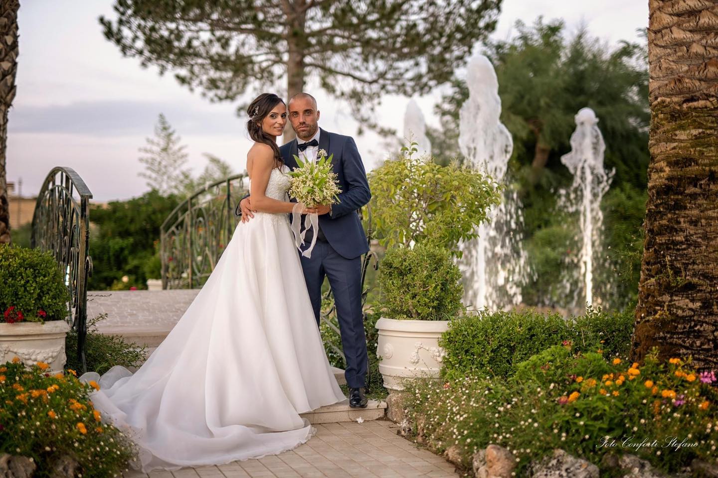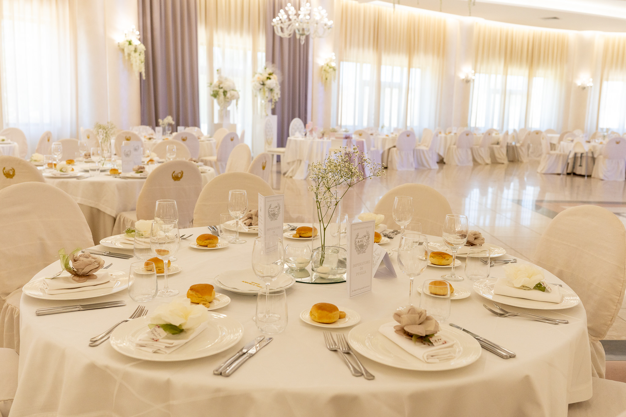 Ambienti eleganti e scenografici per ospitare fino a 300 ospiti, tra sala interna e giardini ricchi di statue, fontane e gazebo per foto da sogno. Allestimenti mise en place raffinati, con cura su ogni dettaglio estetico. Menu studiati dallo chef, tra tradizione pugliese e creatività contemporanea.